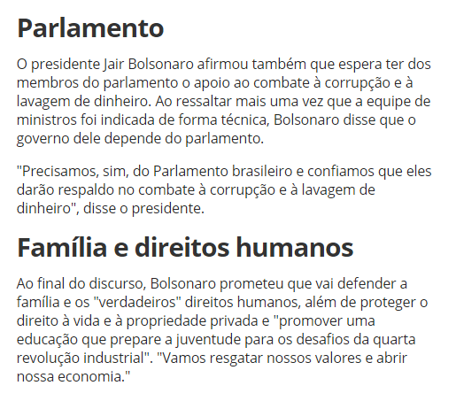O novo presidente citou as reformas políticas e econômicas que o Congresso deverá votar nos próximos meses, classificando-as como assuntos de urgência para o futuro do país.